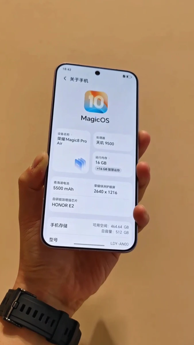 Авторитетный информатор Ice Universe опубликовал первые живые фото смартфона HONOR Magic 8 Pro Air, который будет представлен 19 января. Один из снимков подтверждает наличие топовой однокристальной системой MediaTek Dimensity 9500, 16 ГБ оперативной памяти и батареи ёмкостью 5500 мАч.