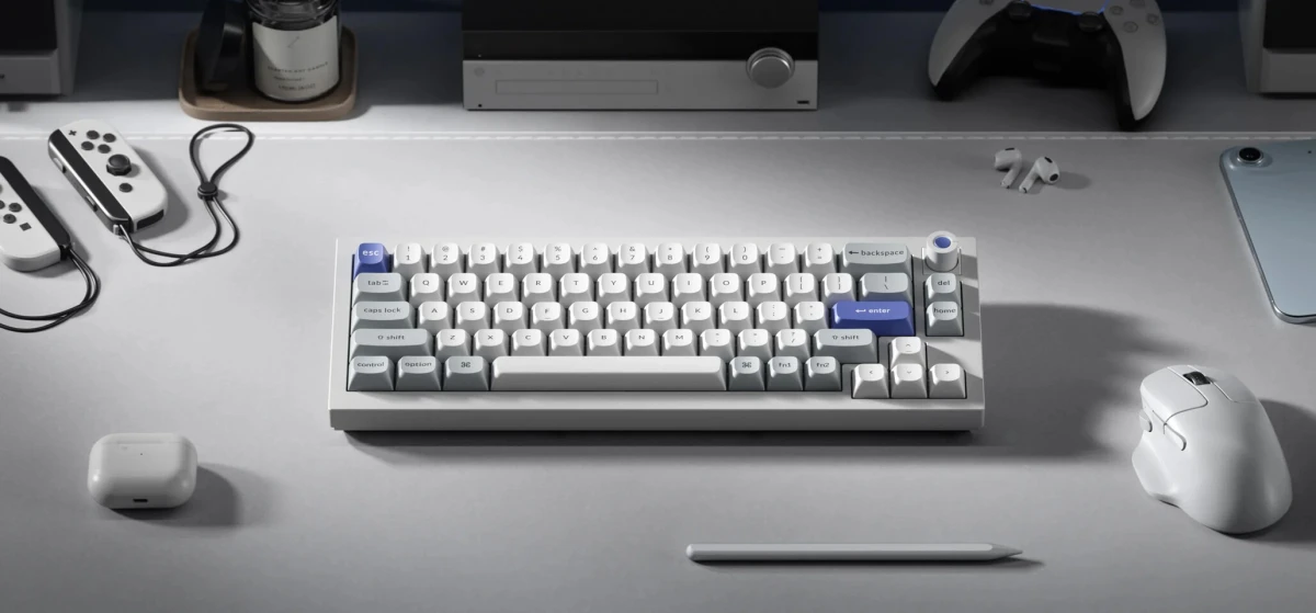 Также стоит сказать, что новая клавиатура доступна в чёрной и белой расцветках, обе версии имеют фиолетовые акценты на клавишах Enter и Escape, а также на алюминиевой ручке, выполненной на станке ЧПУ. Раскладка формата 65% выполнена с небольшими изменениями — справа от буквенного блока расположены всего две навигационные клавиши вместо привычных четырёх. Это связано и с наличием ручки, и с тем, что используется «разнесённая» компоновка 65%, при которой между основным блоком, стрелками и навигационными клавишами есть пространство. И, естественно, Q2 HE 8K полностью настраивается через Keychron Launcher и поддерживает аналоговые функции вроде Rapid Trigger, SOCD, Snap Tap, эмуляцию контроллера и Mod Tap.