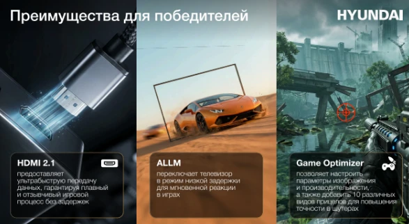 Новая линейка телевизоров HYUNDAI, работающая на базе операционной системы Google TV, создана, чтобы поднять уровень вашего развлечения на новый высший стандарт. Коллекция включает восемь моделей, предлагая решения для каждого интерьера и потребности — от компактных 32-дюймовых до монументальных 85-дюймовых экранов. Все телевизоры поддерживают разрешение 4K Ultra HD, предоставляя потрясающую четкость и реалистичность изображения, которое захватывает дух. Инновационная технология DLG обеспечивает частоту обновления до 120 Гц, что позволяет динамичным сценам выглядеть невероятно плавно и детализированно. Минимальная задержка отклика делает устройства идеальным выбором для геймеров, превращая процесс игры в настоящее зрелище. Для киноманов и любителей спортивных трансляций предусмотрена технология MEMC, которая устраняет артефакты движения, добавляет кинематографической гладкости каждой сцене и усиливает проработку деталей. Поддержка HDR10 глубже раскрывает каждую тень и насыщает цвета, делая изображение еще более живым и выразительным. Забудьте о проблемах с освещением в комнате! Технология HLG автоматически адаптирует качество изображения под окружающую яркость, исключая необходимость ручной настройки. За непревзойденную детализацию и усиление контраста отвечает Dolby Vision, который превращает каждый кадр в произведение искусства с изумительным уровнем реалистичности.