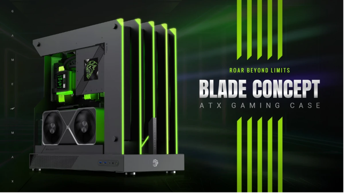 GAMEMAX анонсирует старт продаж игрового корпуса BLADE CONCEPT. Это флагманская основа для сборки ПК с новаторской концепцией и дизайном, открытым форматом и большим пространством внутри. Необычная передняя панель выполнена из высокопрочного нейлона и металла, она олицетворяет союз технологий и эстетики. Она пропускает воздух, задерживая при этом лишнюю пыль благодаря усовершенствованному механизму фильтрации пыли.