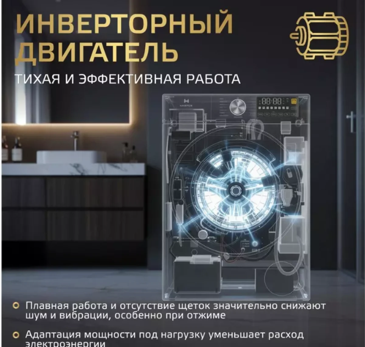 HARPER выпускает новую линейку стиральных машин, флагманом которой стала модель HWMD 14106 IS. Она объединяет функции стирки (до 10 кг) и сушки (до 6 кг). Объём барабана 64 литра позволяет стирать крупные вещи, например, пуховики или постельное бельё, что актуально для больших семей. Машина выполнена в современном дизайне: белый корпус с чёрными акцентами и большая дверца из полупрозрачного стекла. Скорость отжима достигает 1400 оборотов, обеспечивая минимальную влажность белья. Опция бережной сушки сохраняет ткань и облегчает глажку. Устройство оснащено инверторным двигателем Motor BLDC, который снижает шум, минимизирует износ деталей и экономит энергию. На двигатель действует 10-летняя гарантия.