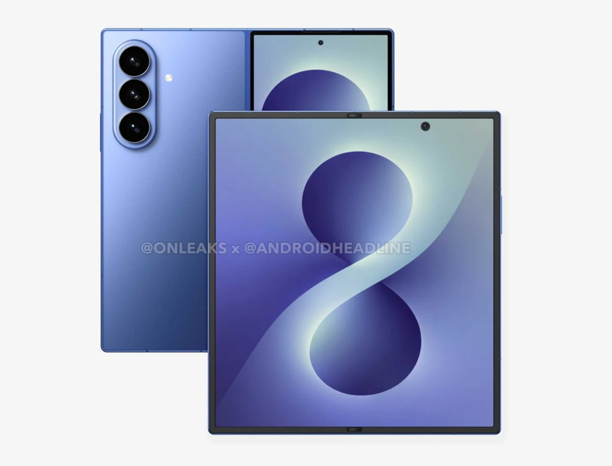 Профильное издание Android Headlines опубликовало первые изображение складного смартфона Samsung Galaxy Z Fold 8, который еще не был представлен официально. Судя по рендерам, аппарат сохранит дизайн предыдущего поколения. Смартфону приписывают размеры 158,4:143,2:4,5 мм в разложенном виде и 158,4:72,8:9 мм в сложенном, 8-дюймовый внутренний дисплей, 6,5-дюймовый внешний экран, батарею ёмкостью 5000 мАч, поддержку 45-Вт проводной и 25-Вт беспроводной зарядок.
