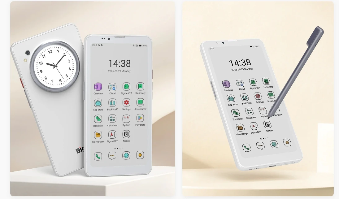 Компания Bigme объявила о выпуске смартфона Hibreak Dual, который может похвастаться наличием двух экранов. Новинку оснастили 6,13-дюймовым основным дисплеем на основе электронных чернил с кадровой частотой 53 Гц, дополнительным ЖК-экраном с разрешением 360:360 точек и поддержкой стилуса, 6-нанометровой однокристальной системой MediaTek Dimensity 1080 с тактовой частотой до 2,6 ГГц и графическим ускорителем Mali-G68 MP4, батареей ёмкостью 4500 мАч, 8 ГБ оперативной и 128 или 512 ГБ встроенной памяти, 20-Мп основной и 5-Мп фронтальной камерами, а также предустановленной операционной системой Android 14. Цена смартфона составляет 360 долларов.