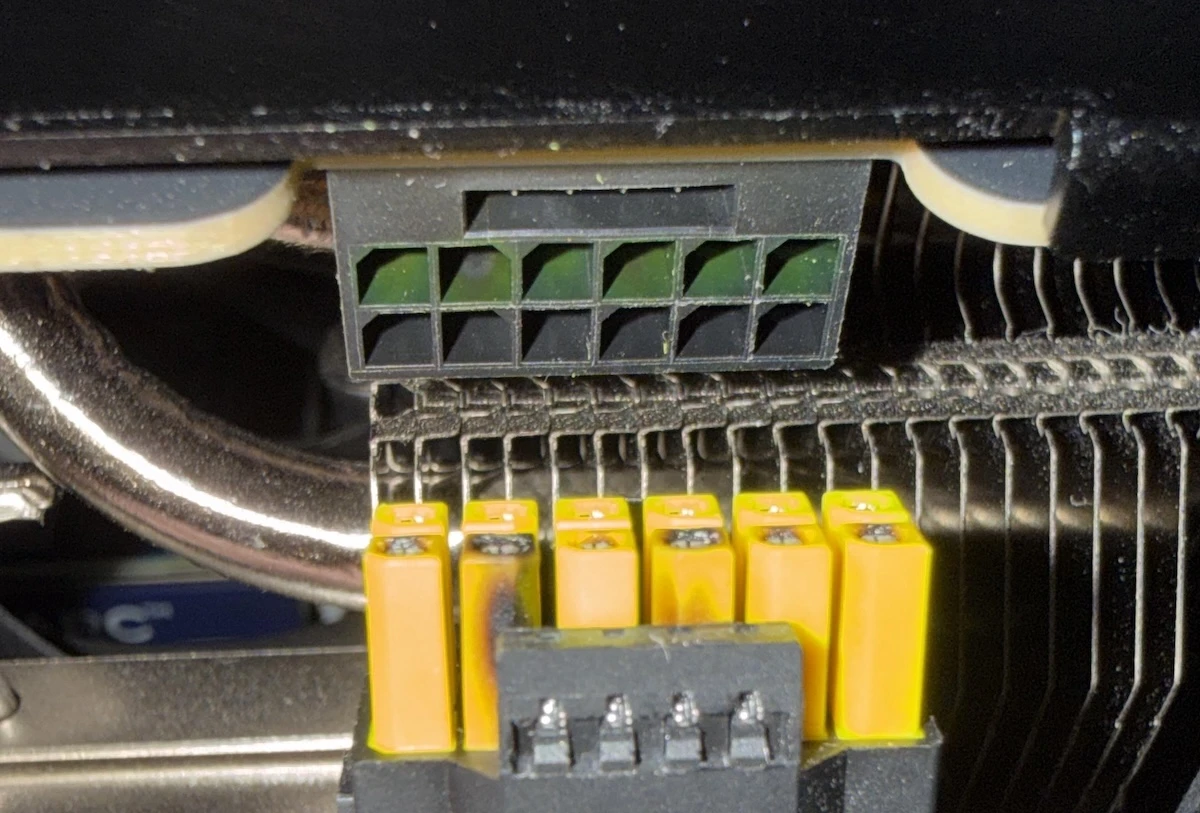 Однако стоит учитывать, что процесс плавления не всегда происходит мгновенно — вполне возможно, что повреждение началось гораздо раньше, а окончательно проявилось только сейчас. Пользователь уточнил, что использовал оригинальный 16-контактный переходник MSI, идущий в комплекте с видеокартой, и подключил его к блоку питания EVGA SuperNOVA 1000 G+. Поскольку сама видеокарта не имеет родного 16-контактного разъёма, переходник оказался необходим. Известно, что при использовании схемы с тремя или четырьмя 8-контактными PCIe-коннекторами, объединёнными в один 16-контактный, распределение нагрузки бывает крайне неравномерным. Видимо, это и стало проблемой.