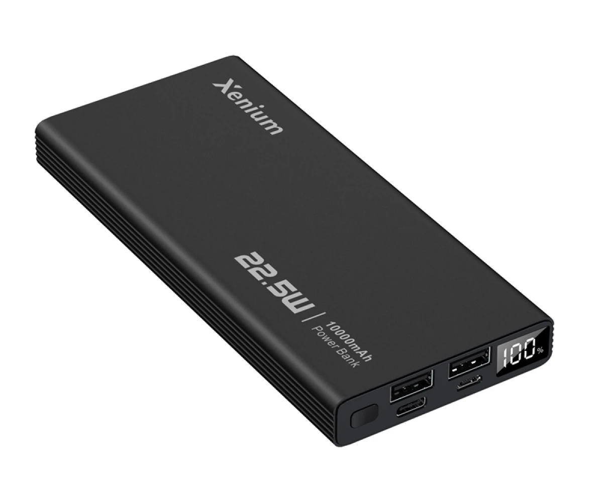 Xenium P2210 — практичный пауэрбанк на каждый день с металлическим корпусом, информативным дисплеем и достаточной мощностью для быстрой зарядки. Подходит для тех, кто ценит надежность, компактность и понятную индикацию заряда.