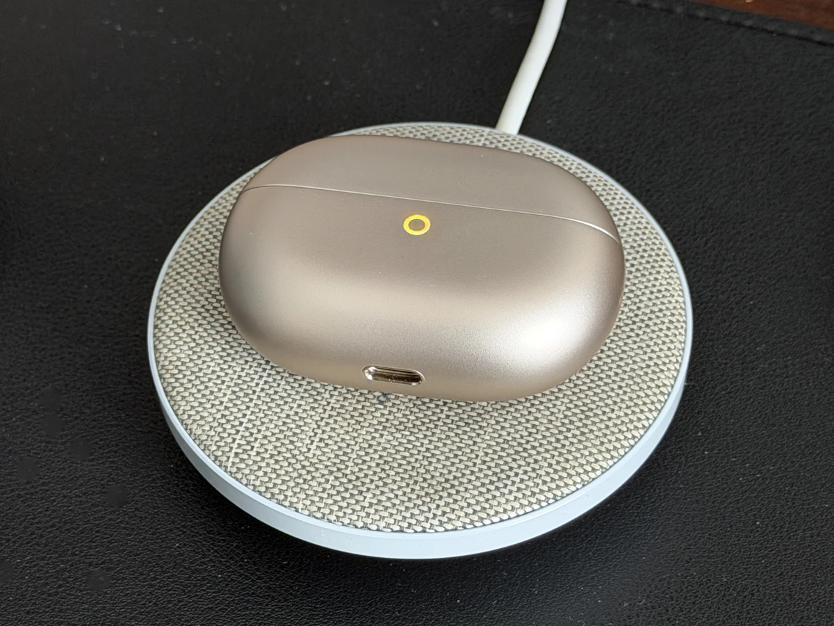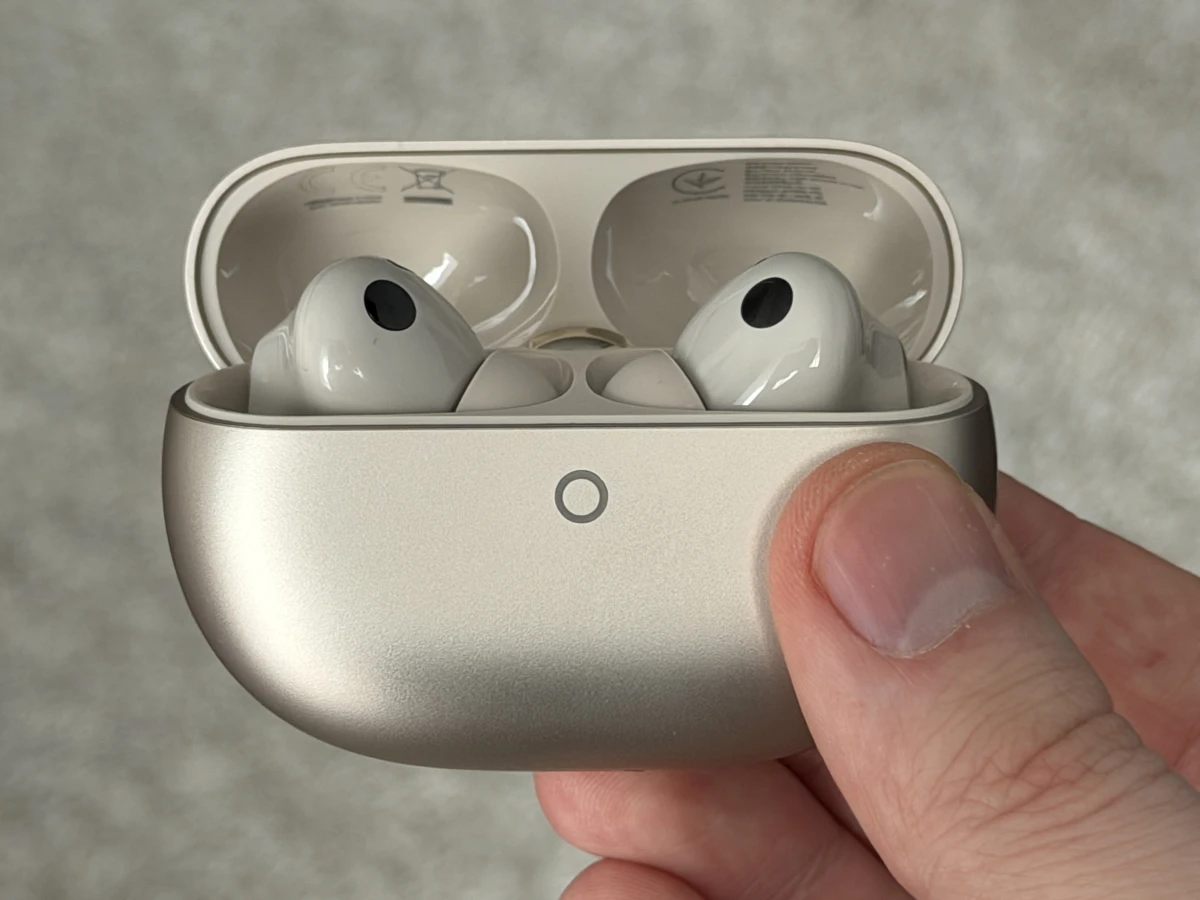 Футляр стал чуть компактнее, но понять это можно только при прямом сравнении. Сам по себе он остался таким же приятным: открывается одной рукой, а закрытие сопровождается приятным щелчком — всё по традиции TWS-моделей. На корпусе минимум элементов: светодиод для индикации уровня заряда кейса и наушников, клавиша для включения режима сопряжения и порт USB-C для зарядки.