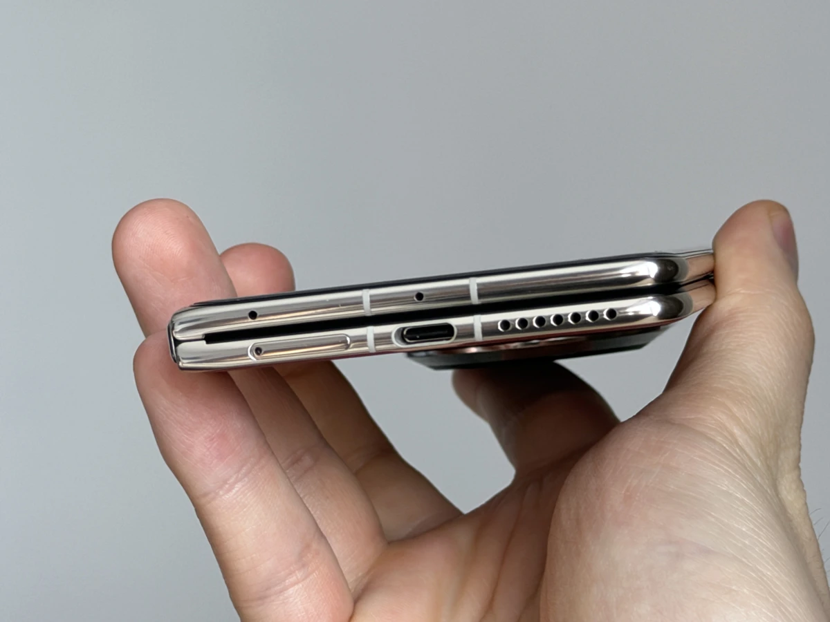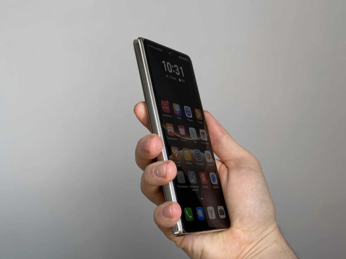 Зато инженеры поработали над габаритами. Благодаря новому шарниру смартфон стал тоньше предшественника: 9,5 мм против 9,9 мм у Mate X6. Впрочем, в гонку за звание самой худой «раскладушки» Huawei ввязываться не стала. На фоне изящных HONOR Magic V5 (9 мм) или Samsung Galaxy Z Fold7 (8,9 мм) Mate X7 ощущается довольно массивно.