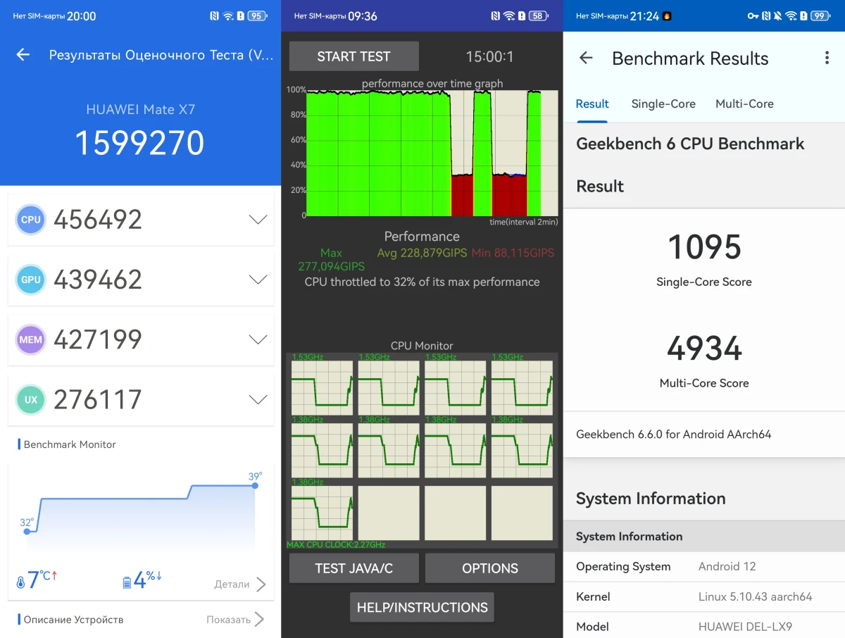 В качестве процессора установлен девятиядерный Kirin 9030 Pro. За графику отвечает видеоядро Maleoon 935. В синтетических тестах вроде AnTuTu аппарат выдает около 1,6 миллиона баллов — это уровень крепкого среднего класса, уступающий рекордным цифрам прямых конкурентов.