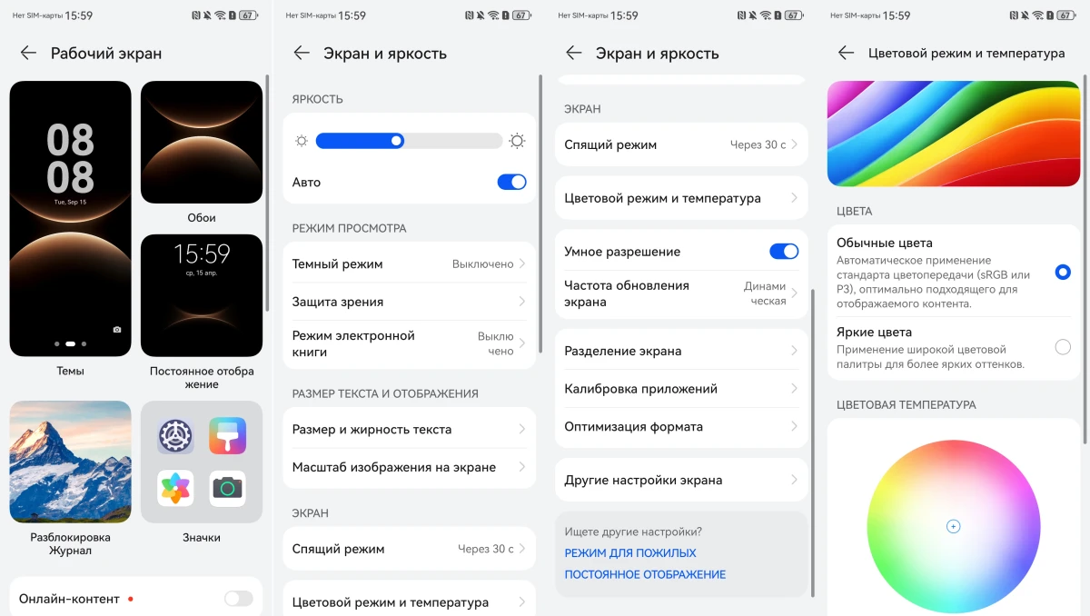 Экранов у Mate X7, как и положено формату, два. Снаружи — отличная 6,49-дюймовая LTPO OLED-матрица с разрешением 2444 × 1080. Внутри прячется 8-дюймовая панель с разрешением 2416 × 2210 пикселей с почти квадратным соотношением сторон 1.1:1. К качеству картинки вопросов ноль. Обе матрицы выдают плавные 120 Гц — частота адаптивная, может падать вплоть до 1 Гц ради экономии батареи. Также дисплеи могут похвастаться ШИМ-затемнением на 1440 Гц, это бережет глаза от усталости при долгом чтении или игре, особенно если вы чувствительны к ШИМ.