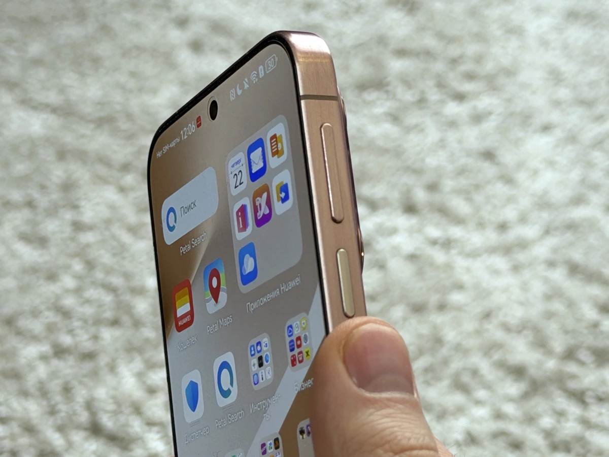 Важнейшая фишка именно базовой модели Pura 80 — абсолютно плоский экран. Никаких «водопадов» и закруглений, что для кого-то может стать жирным плюсом: никаких ложных касаний ладонью, а клеить защитные стекла (если вдруг решите снять заводскую пленку) — проще простого. Само стекло здесь топовое — Kunlun Glass 2-го поколения, так что за сохранность матрицы можно не переживать.