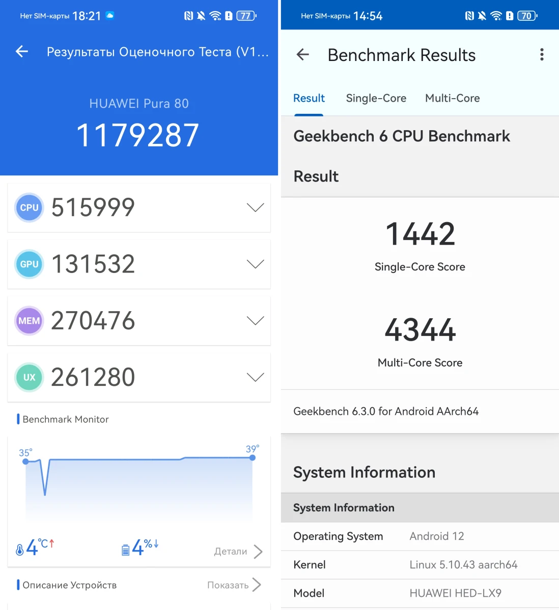 Чип не бьет рекорды в AnTuTu или Geekbench 6 и не пытается соревноваться с монструозным Snapdragon 8 Elite 5 или Dimensity 9500. Нет, это чипы другой лиги, но несмотря на это на игровом поле HUAWEI ведет себя достойно. Мощности с запасом хватает для плавной работы системы, быстрой обработки фото и запуска современных игр в 60 FPS на высоких или средних настройках графики. Да, в тяжелых тайтлах рекордов FPS ждать не стоит, но играть комфортно.