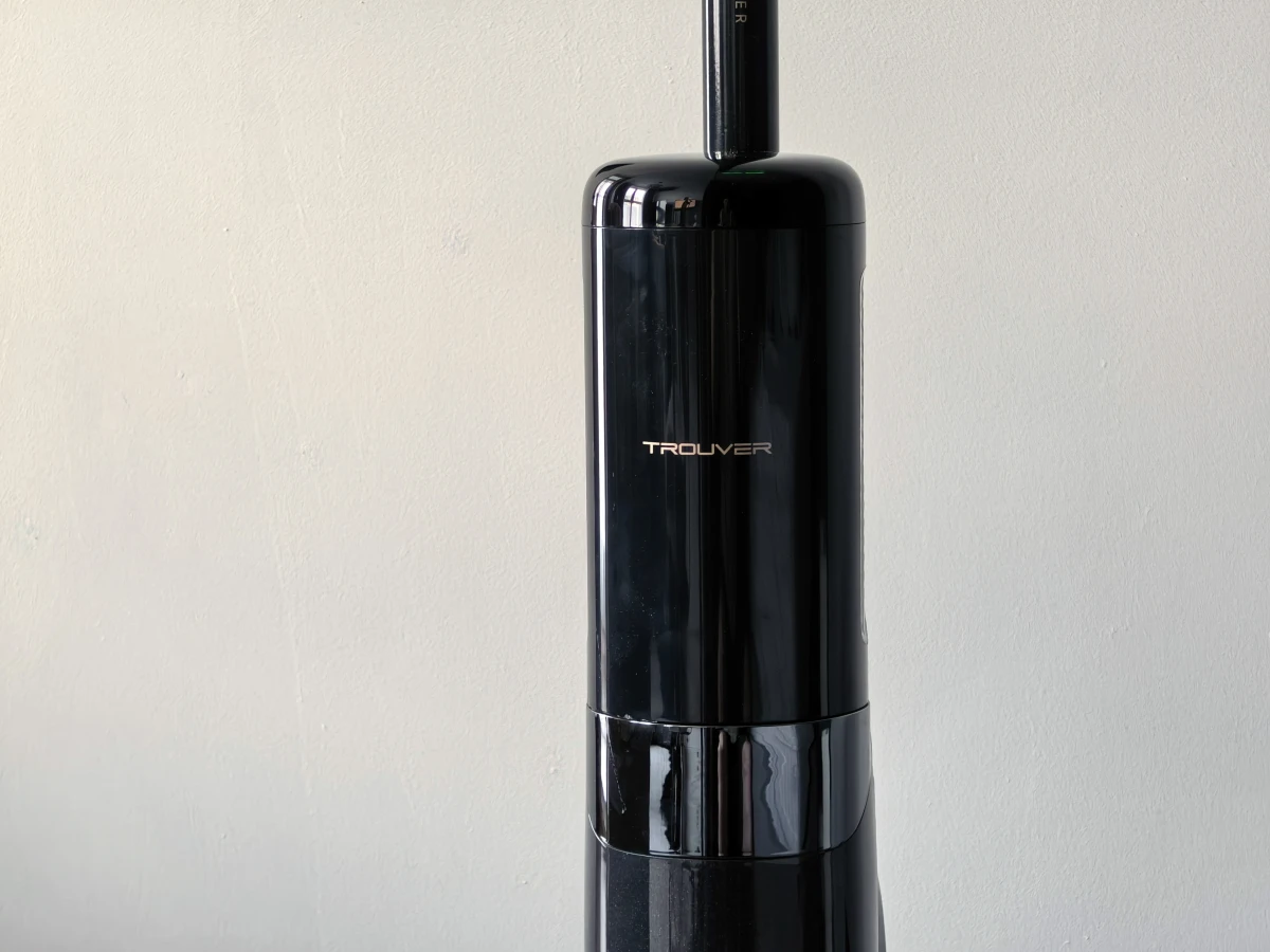 Визуально TROUVER K20 Flex Reach — это образец здорового минимализма. Производитель сделал ставку на тёмные тона и вытянутые формы, полностью отказавшись от лишнего декора. Такой пылесос не превращается в центр внимания, а скромно стоит в стороне. К тому же, матовое покрытие несет отличную практическую пользу: оно блестяще скрывает следы от рук и осевшую пыль, избавляя вас от необходимости натирать сам пылесос после уборки.