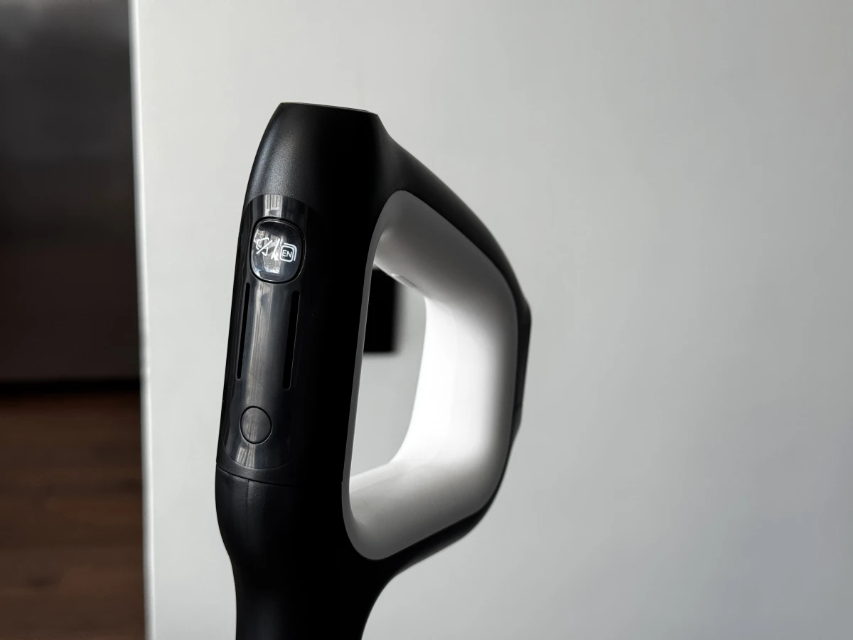 На самой «ручке» есть четыре кнопки: включение, переключение режима работы, активация самоочистки, включение/выключение голосовых оповещений. При активации самоочистки активизируется очистка щетки пылесоса, что удобно — не нужно вручную убирать остатки грязи или волосы. Так что органы управления здесь довольно понятные, а потому такой пылесос может стать хорошим вариантом для подарка родителям.