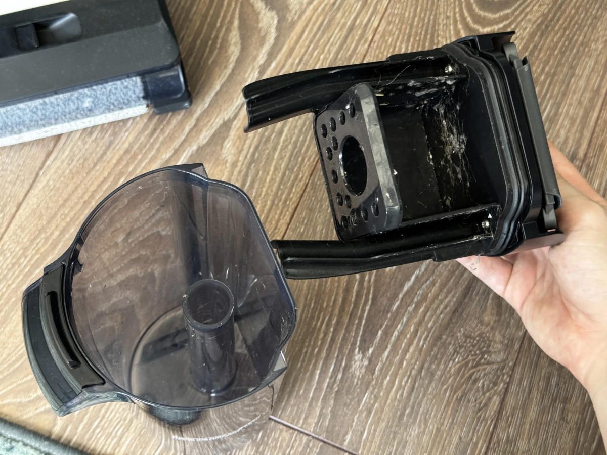 А вот для быстрой чистки ковров Tineco Floor One S5 — не самый целевой выбор. Из-за того, что валик с ворсом, он не может весь мусор удалить быстро, но если поводить по ковру подольше, то можно добиться нормального качества уборки ковра.