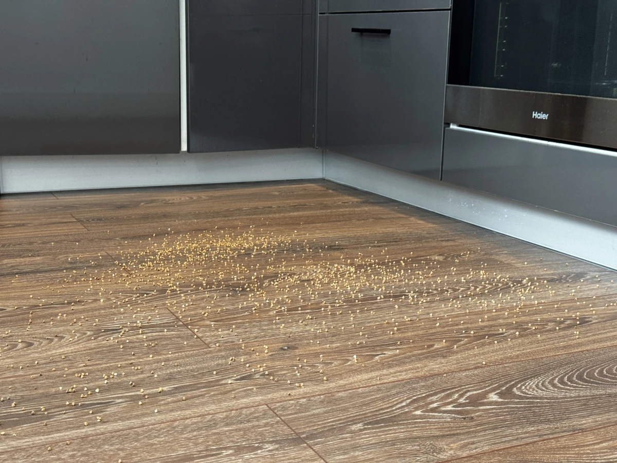 Как итог, Tineco Floor One S5 справляется с любыми загрязнениями, которые можно оставить на полу: пролитый апельсиновый сок, капли сока от арбуза и дыни, томатная паста, засохшая после приготовления болоньезе, зубная паста — всё убирается без проблем. И так как мытьё происходит абсолютно чистой водой из контейнера, а грязная вода не задерживается на полу и сразу попадает в свой отсек, как итог полы чистые с первого прохода и без разводов. Когда моете обычной шваброй, полы приходится перемывать по несколько раз, пока вода не останется чистой, а это тратит время и силы.